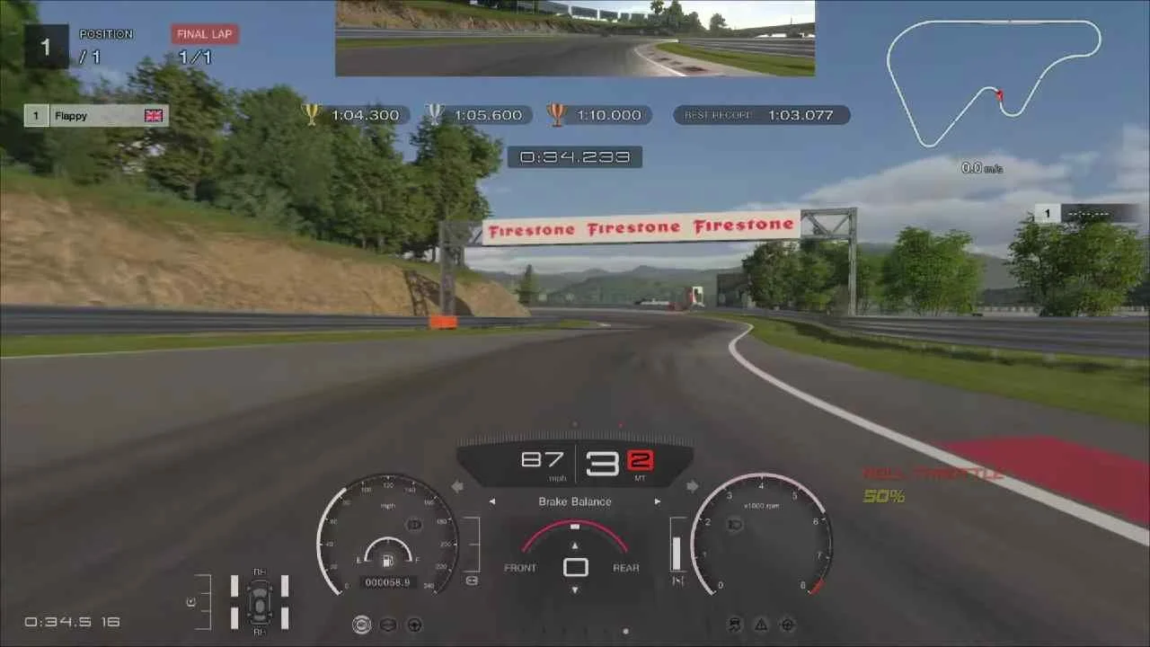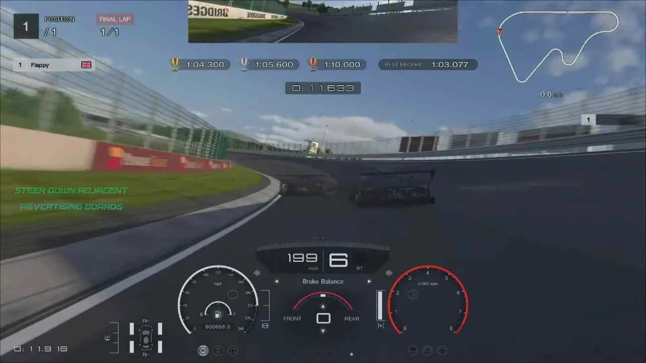 As you exit the corner, use the full width of the circuit, letting the car naturally move over to the right side of the circuit, being careful not to run onto the grass towards turn two.