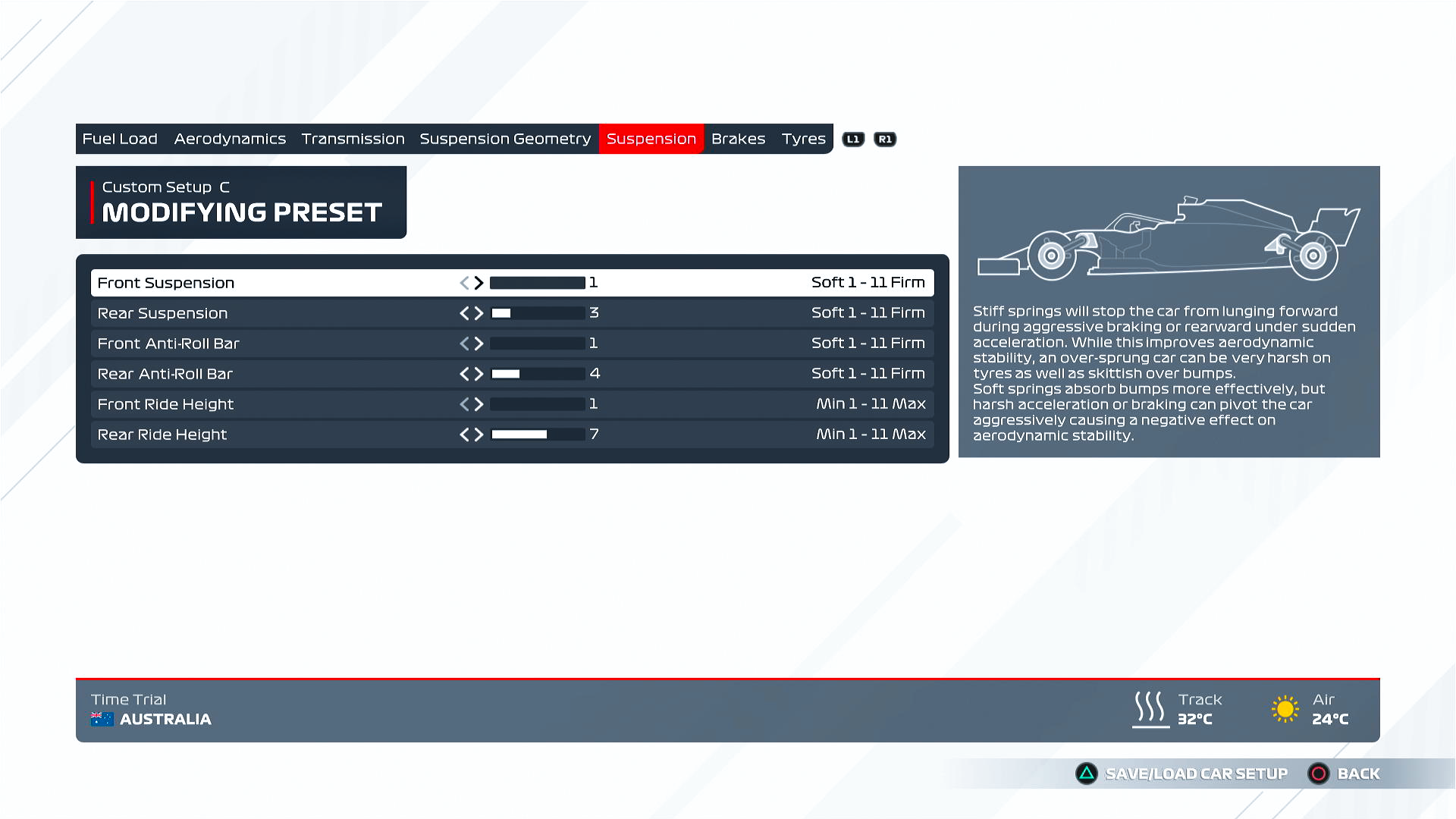 Suspension adjustments impact responsiveness and stability through corners. F1 2021 has some differences to F1 2020, and this section has become more important. The right adjustments here can shave tenths off your lap times!